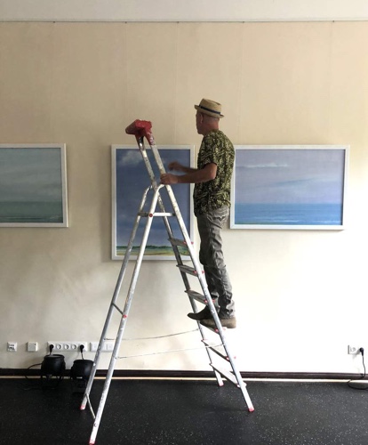 „Die Ferne ist ein schöner Ort, doch wenn man da ist, ist sie fort”, sang Tamara Danz. Und so bleibt der Maler an Land, im Sicheren, an Uferzonen, Stränden, Küsten, in Häusern, hinter den Häusern. Dieser Maler ist kein rucksacktragender Abenteurer. Er ist ein Schauender, der aus sicherer Distanz auf ungeheure Horizonte unter unendlich weiten Himmeln blickt.