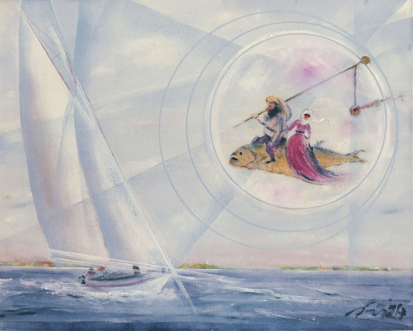 Die legendäre Hieronymus-Bosch-Finn-Dinghy-Regatta Öl auf Leinwand, 180 x 90 (2020) |