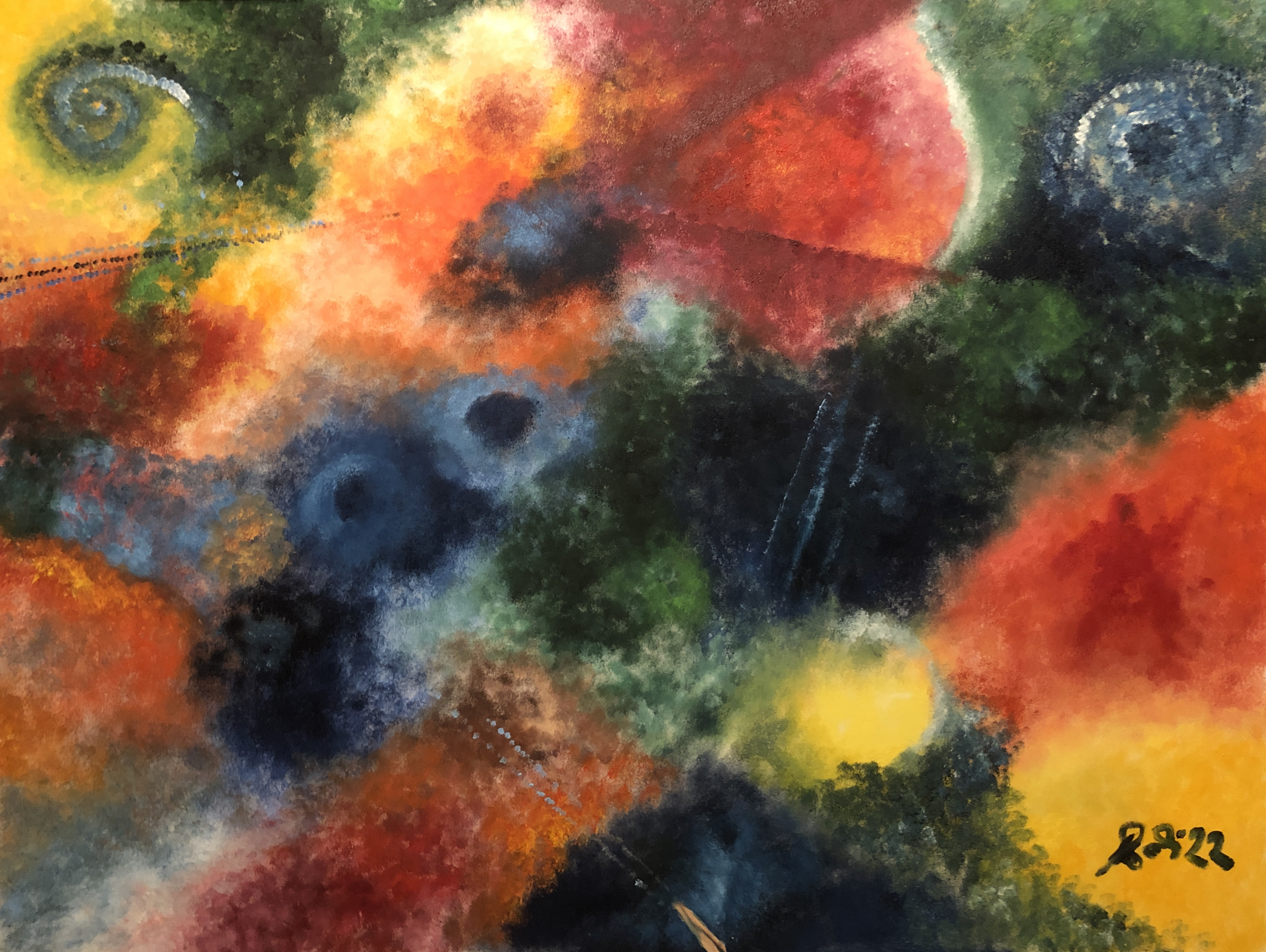 Vermalte SongsGuruGuru - Elektrolurch Öl auf Leinwand, 40 x 30 (2023) |